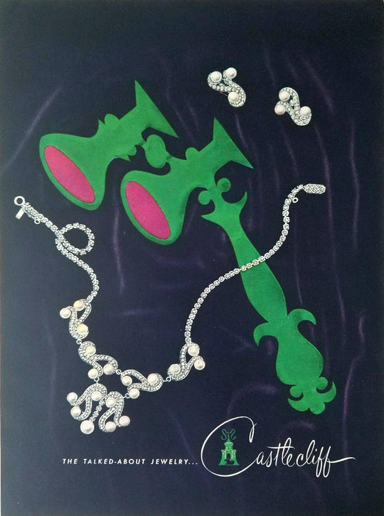 Established in 1918 by jewelry designers Clifford First and Joseph Bobley, CASTLECLIFF was established in the heart of NYC. Wartime in the 1940’s brought on a surge of creativity and scale, as designers embraced wood, plastics and unusual materials in response to material restrictions due to rationing. In the 1950’s, William Markle became lead designer at CASTLECLIFF, and his architecturally trained eye set a fanciful tone for the brand, drawing inspiration from a plethora of eras—most notably Gothic, Art Deco and the Renaissance era. The new decade brought unlimited access to materials, and his bold, sculptural and colorful jewelry was often adorned with multicolored rhinestones, glass gemstones and faux pearls, earning CASTLECLIFF's signature tagline, “The Talked About Jewelry.”