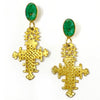 • Large Byzantine Styled Crosses Drop from Floral Carved Jade Glass Stones
