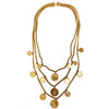 - Long Three Strand Necklace with Coins Scattered Throughout